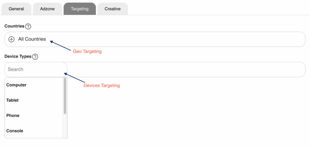 * You have to setup the adnetwork access before selecting it, check out the Adnetworks guide for more details here.